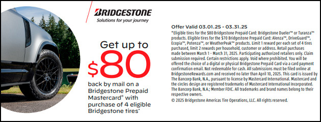 $80Purchase four (4) or more new Michelin passenger or light truck tires to get an $80 Reward Card or Virtual Prepaid Card.